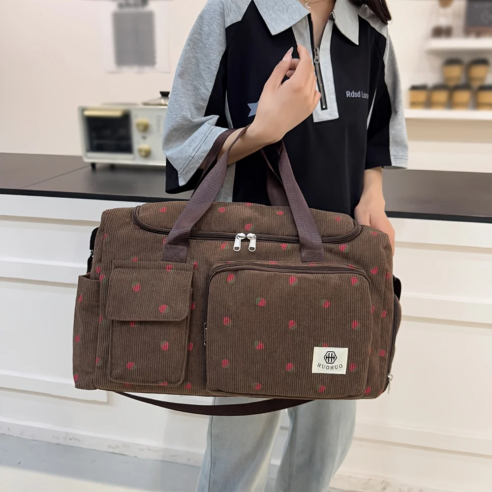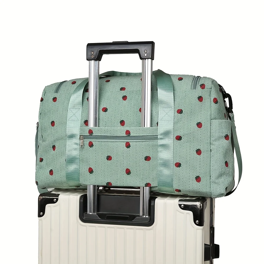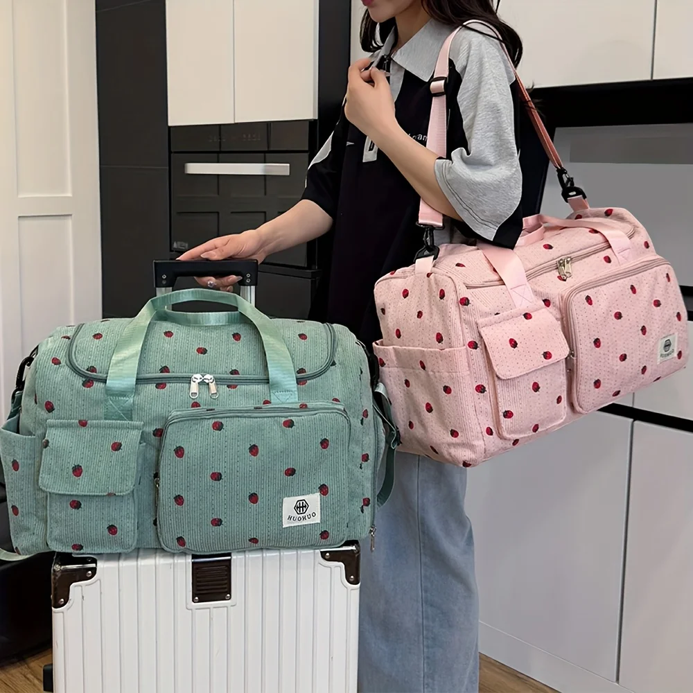 Strawberry travel bag, large capacity corduroy luggage bag, lightweight crossbody bag, multifunctional sports and fitness bag